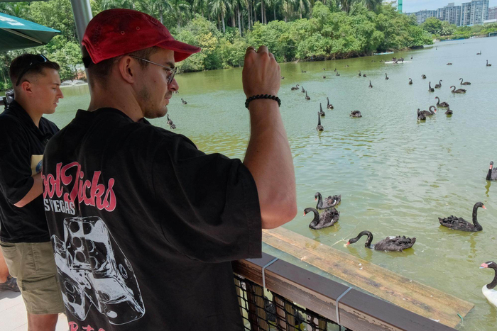 9月10日,马修・伯恩舞剧《天鹅湖》的主演们在广州开启了一场别开生面的以 “鹅” 为主题的一日游活动。从与真实天鹅亲密接触,到体验岭南特色美食,再到融合本地特色的带妆拍摄,此次活动不仅让主演们深入感受广州的城市魅力,也为羊城观众带来了别具一格的艺术互动体验。