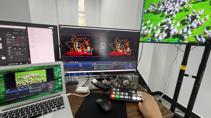 在内蒙古兴安盟,团队依托农创中心建立了劳动教学教育实践基地,配备高清摄像机、无人机等传媒设备,形成“田间课堂+传媒工坊”双空间教学场景。通过开展劳动体验、技能培训、宣传推广与文化创作四类实践活动,成功培养了一批掌握短视频制作技能的本土人才。实现了实践育人与乡村发展的双向促进。