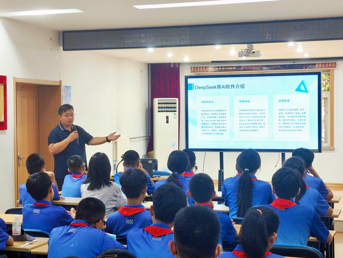 团队联合北双桥村党支部、青岛市新联会,以“伟大贡献——中国与世界反法西斯战争”为主题,在北京和青岛两地同步开展“乡村美育大讲堂——开学第一课”。通过三维动画等数字艺术内容,生动再现历史场景,增强课程感染力。教室的红色歌曲合唱、现场的师生互动等环节极大激发了青少年的爱国热情。