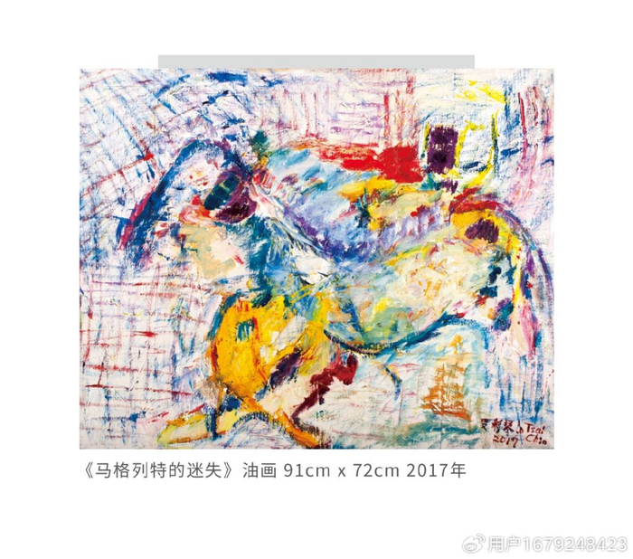 在她的笔下,没有固定的物象形态,却能通过交织的线条、碰撞的色彩、流动的肌理,让观者感受到生命的脉动:或是浓墨重彩间迸发的生命张力,或是柔和色块中蕴含的沉静力量,那些看似随机的笔触与色彩,实则是她对生命体验的提炼与升华,将无形的情感、哲思转化为可感知的视觉语言,让抽象艺术不再是晦涩的符号游戏,而是充满温度与深度的生命对话。