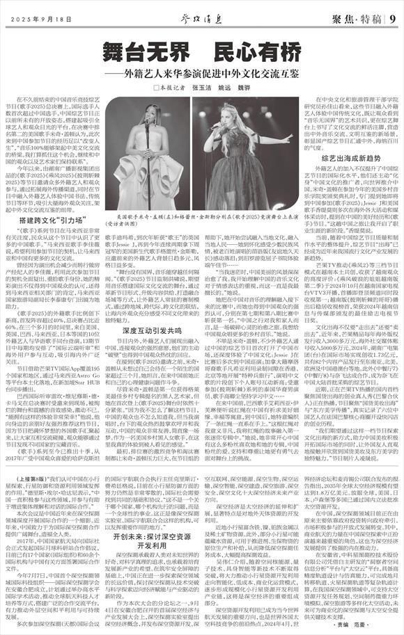 “舞台没有国界,音乐能穿越任何隔阂。”《歌手2025》节目监制洪啸说,期望用音乐搭建国际文化交流的舞台,通过革新节目形式、升级内容供给、打造融合场域等方式,让外籍艺人常驻的赛制模式,通过跨地域、跨代际、跨文化的联结,让海内外观众充分感受不同文化带来的独特魅力。