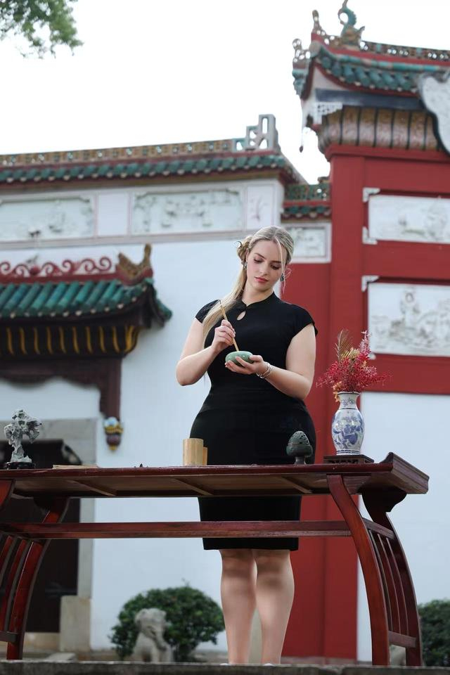 5月31日,美国歌手格蕾丝·金斯勒在岳阳屈子文化园景区体验中国书法。(受访者供图) 芒果TV推动《乘风2》等三档节目模式在越南本土共创,收获了越南观众的高度评价:《乘风破浪的姐姐越南版第二季》于2024年10月在越南国家电视台VTV3开播,首播即登顶频道同时段收视第一;越南版《披荆斩棘的哥哥》播出后稳居收视榜首,荣获2024年越南信息与传媒部颁发的最佳励志电视节目奖。