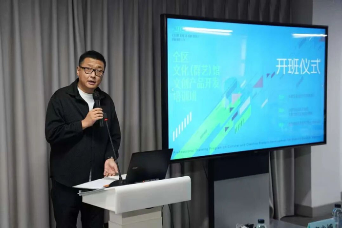 李少博介绍了本次培训是推动北疆文化繁荣和文创人才培养的重要举措。他表示,学院始终秉持根植多元文化、集成科技创新的理念,构建“设计+”跨学科体系,聚焦文创设计、非遗活化等领域,致力于以文创产品讲好中国故事、传播北疆文化。他希望以本次培训为契机,加强馆校合作,搭建起馆校合作、馆际联动的坚固桥梁,共同织就北疆文创产业蓬勃发展的锦绣蓝图!