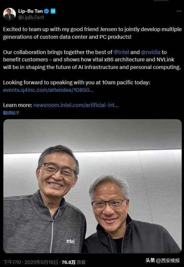 2025年9月,英伟达50亿美元入股英特尔