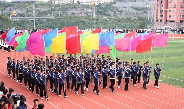 仪仗方队、彩旗方队、冠军方队、裁判员方队及各学院方队依次入场,青春气息与热烈氛围扑面而来。
