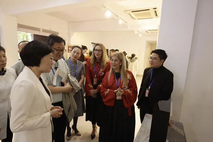 中国美术家协会原副主席、清华大学美术学院原院长鲁晓波一行参观“遇上雁荡-欧洲艺术家作品展”现场