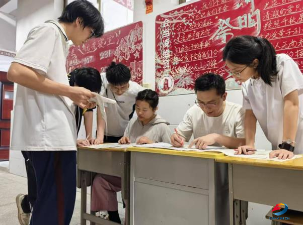简易的桌椅在走廊一字排开,学校各科老师化身"知识摊主",为学生提供个性化辅导。数学老师现场解析几何难题,英语老师耐心讲解作文写作技巧,物理老师则通过现场实验演示抽象概念。遇到情绪焦虑的学生,老师们还会停下手中的辅导工作,以知心朋友的身份进行心理疏导,帮助他们缓解压力、调整状态。