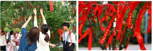 为缓解备考压力,凝聚班级力量,传递同窗情谊与师长祝福,学校组织学生在文字与色彩中感受温暖,汲取前行的力量。学员用马克笔在丝带上书写对自己、同学、老师的寄语,通过记录笑容、分享喜悦,使学员在互动中体悟幸福,传递友善之情。