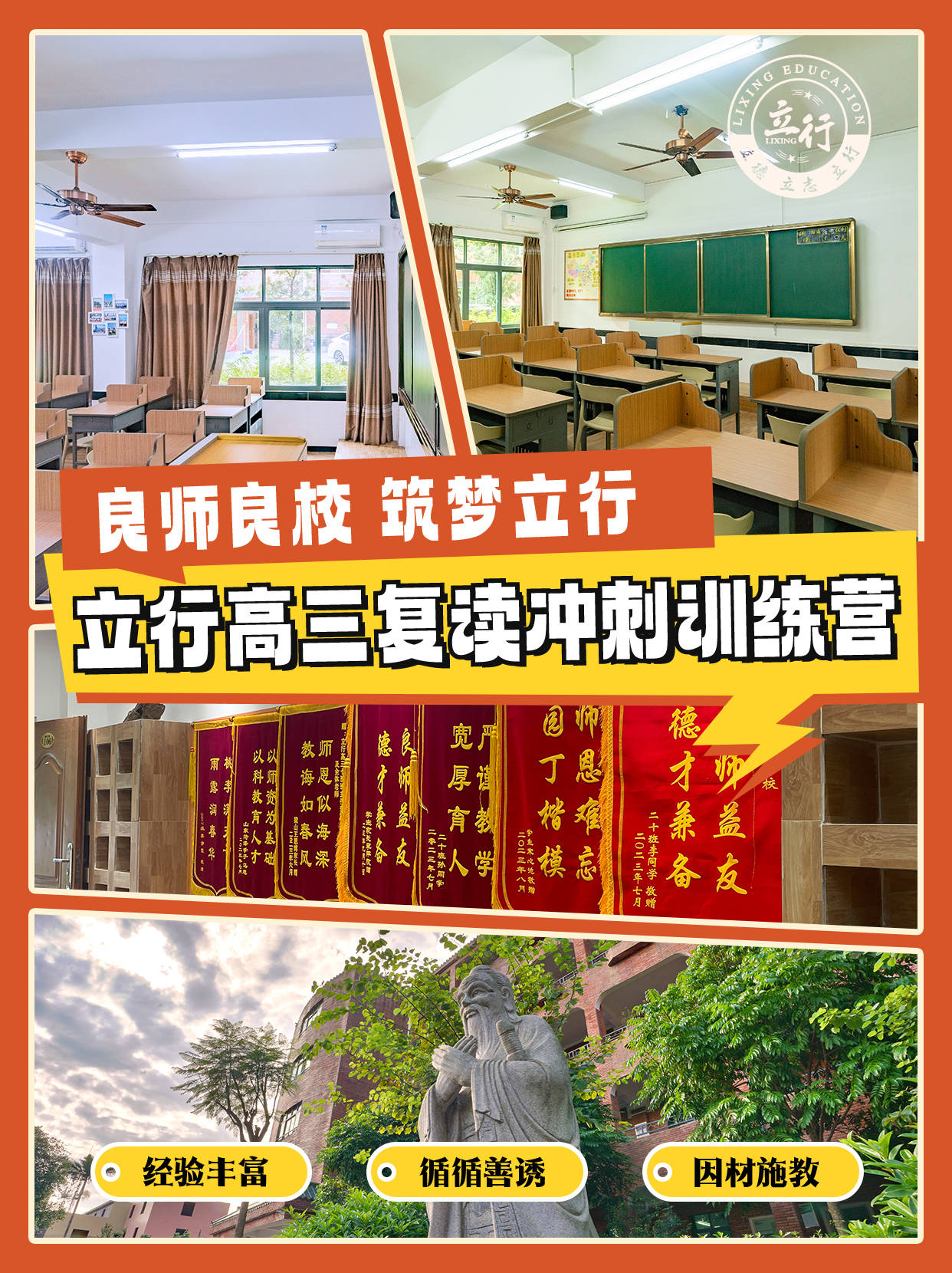 立行广州高考复读集训班的硬件设施也十分出色。校园环境优美,空气清新,漫步其中,身心都能得到放松。宿舍是上床下桌的设计,有隐私床帘,空调全天开放,卫生间干湿分离,洗漱双人台 24 小时供应热水,居住体验舒适。食堂更是美食天堂,八大菜系应有尽有,自助选餐还不限量,孩子们吃得开心,学习也更有劲头。教学体系上,立行独创 “三级火箭班”,根据学生每月的知识掌握情况和应试能力动态调整班型,从基础班、提升班到冲刺班,精准提分,每个学生都能找到适合自己的节奏。像我朋友家孩子,原本数学偏科严重,在立行经过老师针对性辅导,加上分层教学的优势,成绩提升显著。