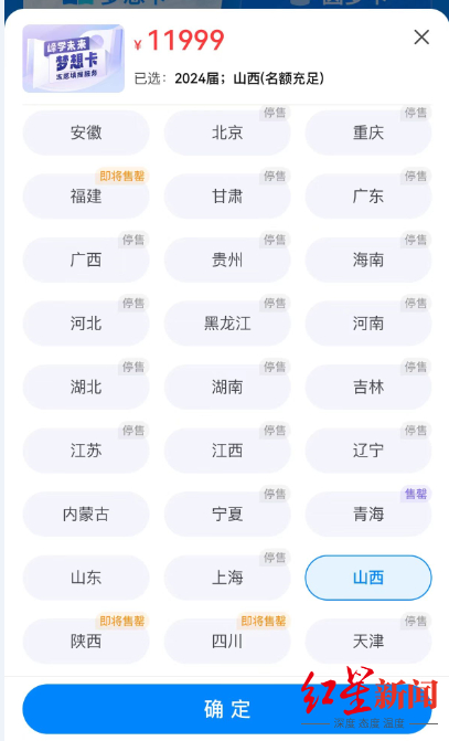 高考前夕,“张雪峰2026年志愿填报服务已售罄”、“近2万的张雪峰志愿填报课靠抢购”等话题也曾登上热搜。6月14日,红星新闻记者在“峰学蔚来”App看到,2024届志愿填报梦想卡售价11999元,除安徽、山东、内蒙古等省份外,绝大部分省份名额已经售罄。课程介绍中还提到,产品为张雪峰团队一对一老师服务,非张雪峰本人亲自服务。