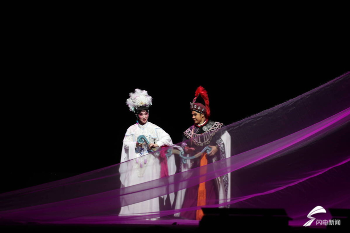 齐鲁网·闪电新闻8月31日讯 8月30日至31日晚,山东省文化艺术学校新编剧目《凤凰鸣》在济南市百花剧院上演。