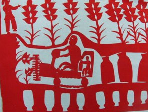 在培训班上,颜老师要求我们——不能光剪花样子,要放开。剪花鸟虫鱼、剪飞禽走兽、剪劳动生活场面、剪人物、还要剪出背景。看到的、想到的都可以剪。我们都按颜老师说的去剪,互相学习、互相交流。